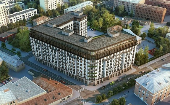 Десятиэтажный жилой комплекс будет построен на углу Малой Зелениной и Корпусной улиц к 2016 году. Прежде там стояли шесть сталинских зданий, в том числе бывшая школа.