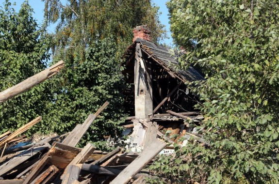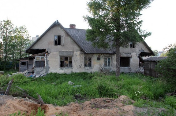 Последние дома бывшего поселка Ленино, что располагался южнее Петергофского шоссе за усадебными парками, сносят ради канализации. Их признали аварийными.