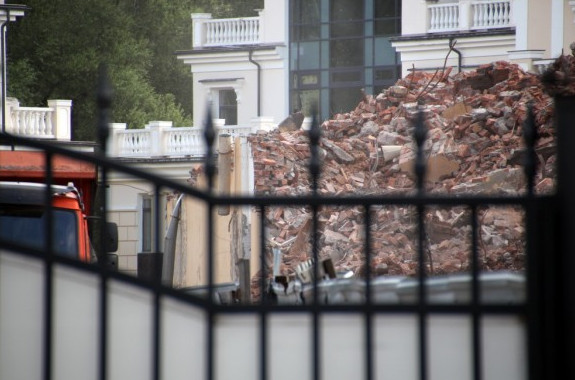 Ответственность за снос здания взяла на себя группа компаний «Размах». Там констатировали, что здание уже демонтировано. Однако побывавший сегодня на Каменном острове корреспондент «Карповки» обнаружил, что от постройки еще остается первый этаж, и сейчас снос продолжается.