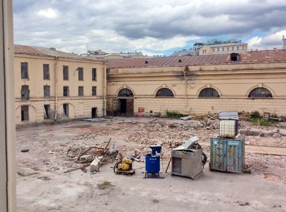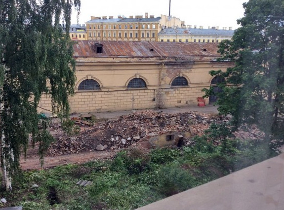 Во дворе Конюшенного ведомства на Конюшенной площади, 1, снесли два одноэтажных флигеля, которые были построены до революции. Это необходимо, чтобы под ним оборудовать спа-комплекс.