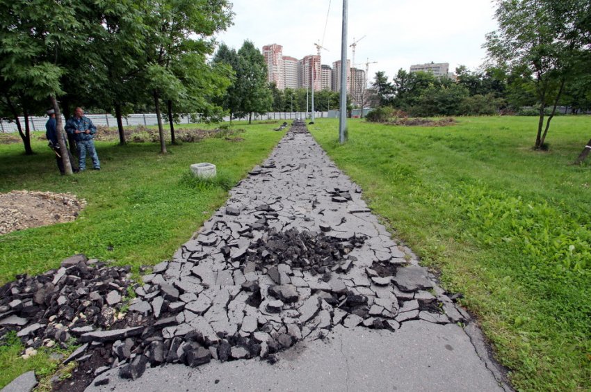 На территории роддома уже началась подготовка к строительству — участок в сквере перед зданием, слева от главного входа, где должен разместиться новый корпус, огородили забором, сейчас там идет демонтаж асфальтовых дорожек. Отметим, что начавшиеся работы пока не узаконены — ордер на установку ограждения административно-технической инспекцией выдан не был.