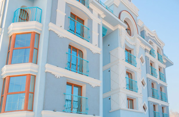 - Избегайте слишком вызывающих оттенков. Если они не соответствуют функциональному назначению здания, они могут выглядеть на фасаде неуместно.