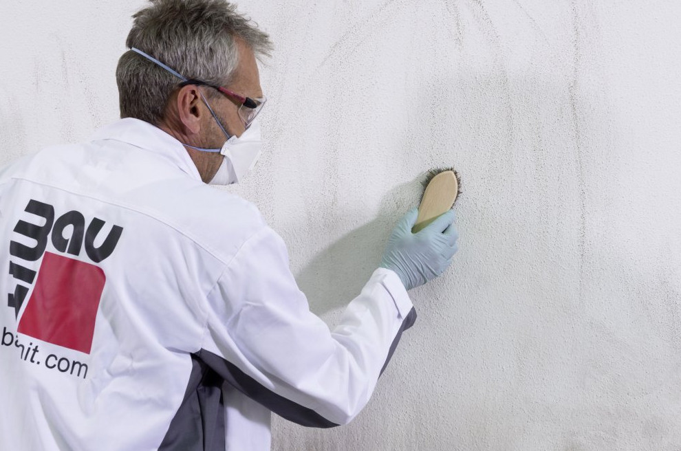 При ремонте и выравнивании стен следует использовать набрызг Baumit Spritz 2 и штукатурную смесь Baumit MPA 35 Fine. После выравнивания основания можно нанести грунтовку Baumit UniPrimer и одну из декоративных штукатурок Baumit.