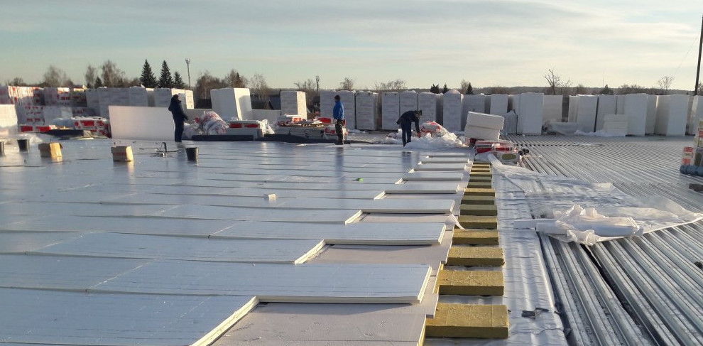 Таким образом, происходит разогрев только кровельного материала. Перед наплавлением плиты теплоизоляции грунтуются праймером. Технология также прошла испытания в российском АО «ЦНИИПРОМЗДАНИЙ» и получила положительный отзыв.