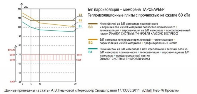 Также низкие значения паропроницаемости подтверждаются испытаниями в отечественных лабораториях – ЦНИИПРОМЗДАНИЙ. Это позволяет применять материал на крышах быстровозводимых зданий с сухим, нормальным, влажным и мокрым режимом эксплуатации помещений.