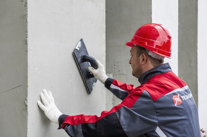 Когда плиты из минеральной ваты смонтированы и закреплены дюбелями, проводится устройство базового армирующего слоя. В данном процессе применяются смеси на цементной основе, обладающие высокой пластичностью — ТЕХНОНИКОЛЬ 210. В их состав входят особые модификаторы, позволяющие наносить смесь тонким слоем и не дающие ей быстро затвердеть, ведь, как вы уже поняли из названия этого слоя, после его на несения на поверхность минеральной ваты его армируют, делают это при помощи щелочестойких фасадных стеклосеток.