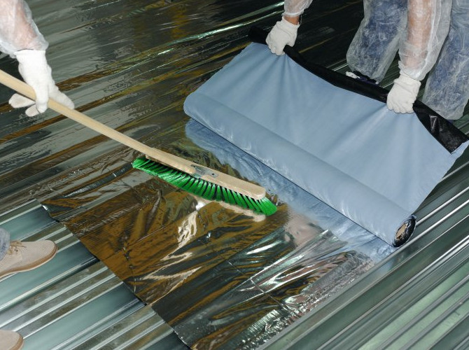 Цельный металлический лист пар не пропускает, но через многочисленные стыки и места крепления листов прекрасно проходит водяной пар. Подобное проникновение в холодный период года может привести к влагонакоплению кровельной конструкции. Поэтому пароизоляция между несущим основанием и утеплителем, наряду с верхним слоем гидроизоляции, играет одну из ключевых ролей в создании надежной кровельной системы.