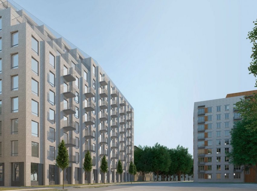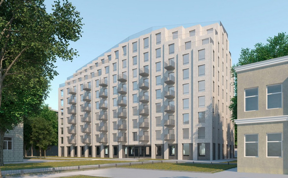 Жилой дом будет девятиэтажным. Его фасады предсказуемо не восстанавливают облик снесенных дореволюционных бань.