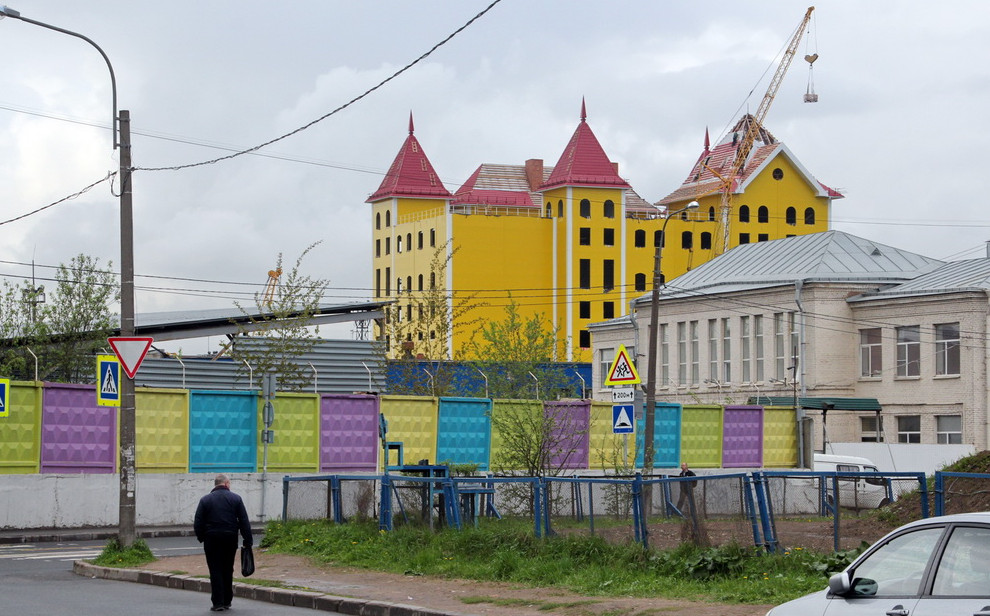 На проспекте Девятого Января, 11, корпус 2, ведется строительство одного из самых необычных промышленных зданий современного Петербурга. Швейную фабрику решили выполнить в формах замка.
