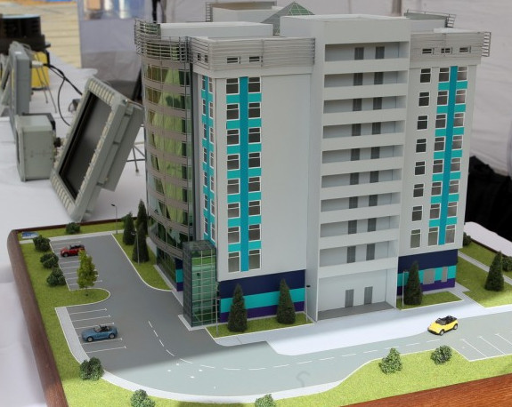Сегодня был представлен макет будущего здания. Это квадратная в плане десятиэтажка с балконами и фасадом в «стиле» стаканизм.