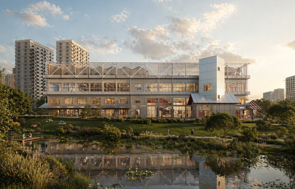 МОСКВА, 23 апр – Недвижимость. Девелоперская группа "А101" построит в жилом районе "Прокшино" в Новой Москве, комьюнити-центр с огородом на крыше, власти столицы уже согласовали архитектурно-градостроительное решение объекта, сообщила пресс-служба компании.Центр предназначен для проведения свободного времени жителями района. Его концепцию подготовил консорциум московских архбюро IND и DO buro. Общая площадь трехэтажного здания с эксплуатируемой кровлей составит почти 9,9 тысячи квадратных метров. На эксплуатируемой кровле площадью более тысячи квадратных метров разместится большая спортплощадка для командных игр в теплое время года: стритбола, баскетбола, волейбола, тенниса, указывается в сообщении.«"Также там расположится и целый агрокомплекс на крыше: крытая оранжерея, общественный огород для круглогодичного садоводства и биомодуль для детских ботанических исследований", - говорится в нем.В центре откроют несколько мастерских, в том числе столярную, слесарную, гончарную, а также IT-пространство, где можно будет заниматься с электроникой и робототехникой. Предусмотрены помещения для образовательных программ, выставок, киносеансов, спектаклей, студии звукозаписи, репетиционной точки, фото-видеостудии и медиаковоркинга, библиотеки, книжного магазина, кофейни, сообщила пресс-служба.© ГК "А101"Комьюнити-центр в жилом районе "Прокшино" в Новой Москве