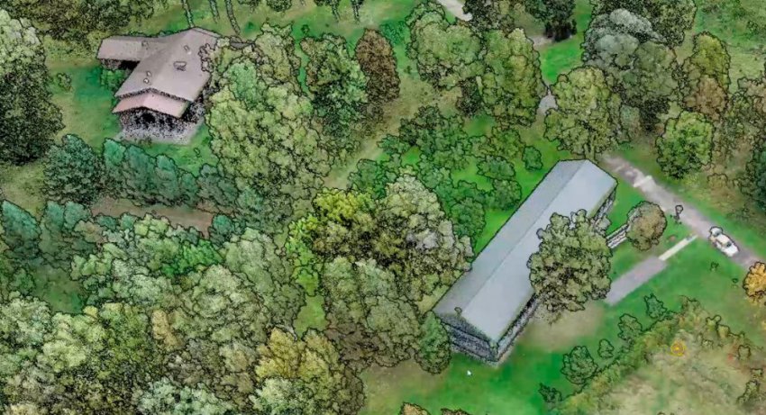 Пример облака точек лазерного сканирования лесистой местности и строений
