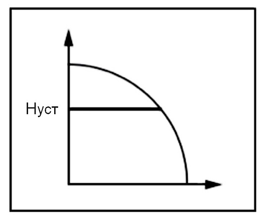 В системах с постоянной скоростью вращения можно установить насос только на одну гидравлическую кривую. Рассмотрим цикл заполнения резервуара с горячей водой для бытового потребления. Сопротивление теплообменника постоянно, сигнал поступает от термостата, который сообщает, что горячая вода в резервуаре остыла. По сигналу включается котёл и насос.