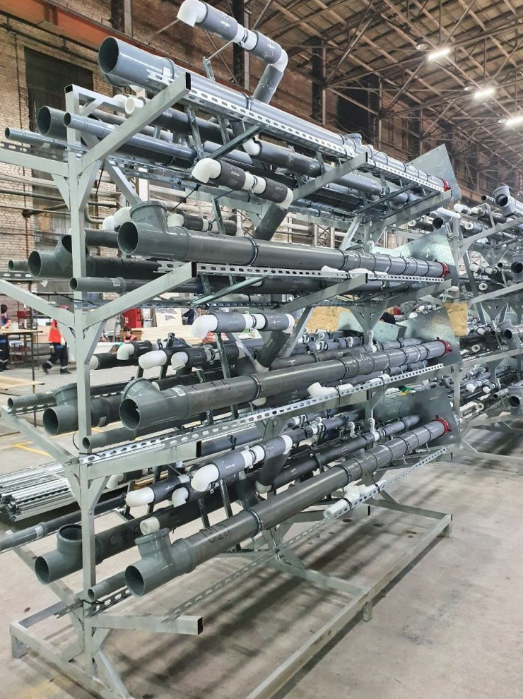 Во-вторых, высокое качество соединений – все комплектующие и материалы закупаются одномоментно, процесс производства стандартизирован и разбит на детальные операции с пооперационным контролем специалистами отдела качества. Под каждую операцию созданы свои требования приемки продукции. В конечном итоге шахт-модуль проходит гидравлические испытания, упаковывается и отправляется на склад хранения. Процесс гидравлических испытаний повторяется при сборке стояков на строительном объекте, что дает дополнительный контроль качества соединения сетей. На строительной площадке проведение работ в таком объеме, сроках и качестве крайне затруднительно. Трассы холодного и горячего водоснабжения подвергаются опрессовке, а канализация – проливу. Такой чек-ап сначала на производстве, а затем на стройплощадке позволяет не только зафиксировать идеальную работу систем, но и вовремя выявить все недочеты и сразу их устранить.