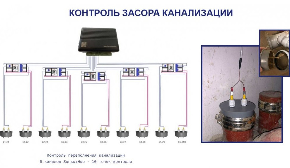 В системе канализации датчики лучше расположить в здании там, где вертикальная труба переходит в горизонтальную, и где канализационная труба выходит в колодец за зданием. Именно в этих местах чаще всего происходят засоры. Что касается протечек водопровода, сейчас в стандартах прописана их фиксация только на полу, но этого явно недостаточно. Жидкость может находиться внутри стен, потому что там проложены трубы, внутри потолка, потому что крыша может протекать.