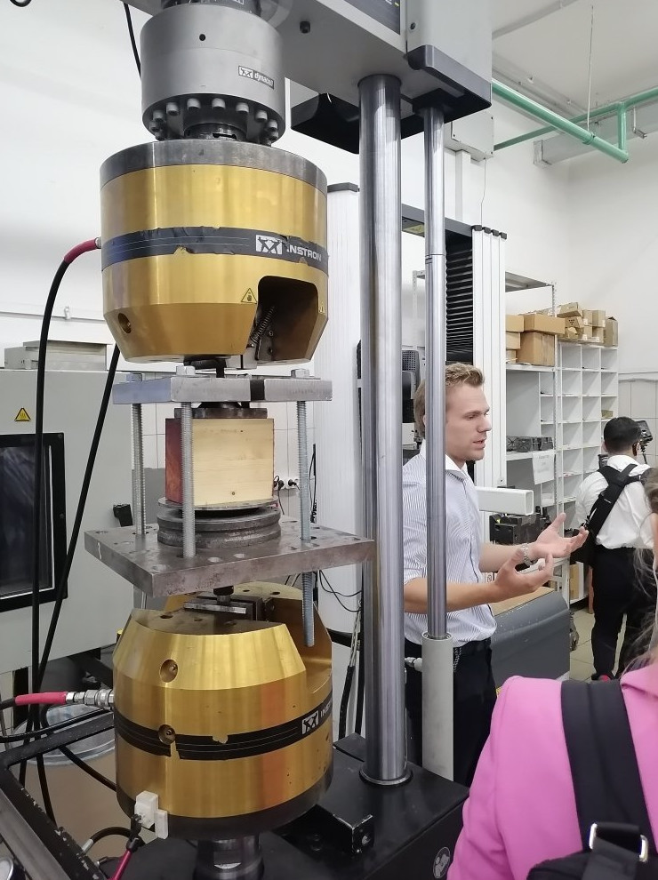 ...Журналистов подводят к огромной штуковине, которой под силу сломать, кажется, даже маленький домик. Это рама для трехосного нагружения конструкции – она позволяет понять, как работает конструкция при усилиях на кручение, других нестандартных нагрузках.