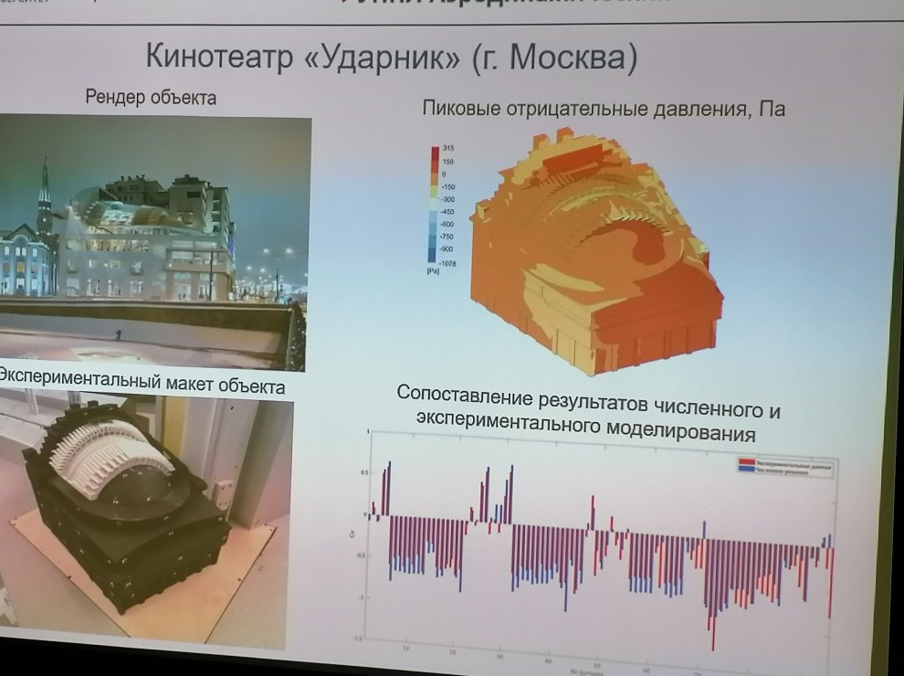 А вот кинотеатр «Ударник», который войдет в единый музейный комплекс с ГЭС-2, а сейчас реконструируется, знаменит своей необычной формой, способствующей ветровым вихрям и появлению снеговых мешков. В связи с этим у специалистов возникло много вопросов по ветровым и снеговым нагрузкам. Ему обязательно было показано «ветровое» испытание.