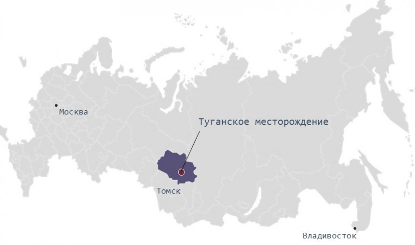Туганское месторождение – крупнейшее российское месторождение ильменит-цирконовых рудных песков. Кроме того, оно поставляет на рынок кварцевые пески, широко применяемые в стекольной промышленности. Освоением месторождения на сегодняшний день занимается компания «Ильменит», являющаяся владельцем лицензии на добычу рудных песков и попутных компонентов месторождения.