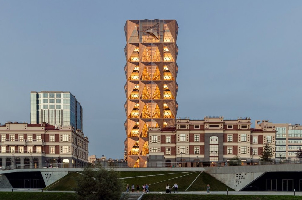 Любопытно, что архитектурное бюро «Foster + Partners» специально наблюдало за рассветами и закатами в Екатеринбурге, изучало, как преломляется свет, чтобы правильно расположить грани фасада. И теперь в разное время суток штаб-квартира РМК отливает разным цветом — от золотистого до глубокого коричневого.