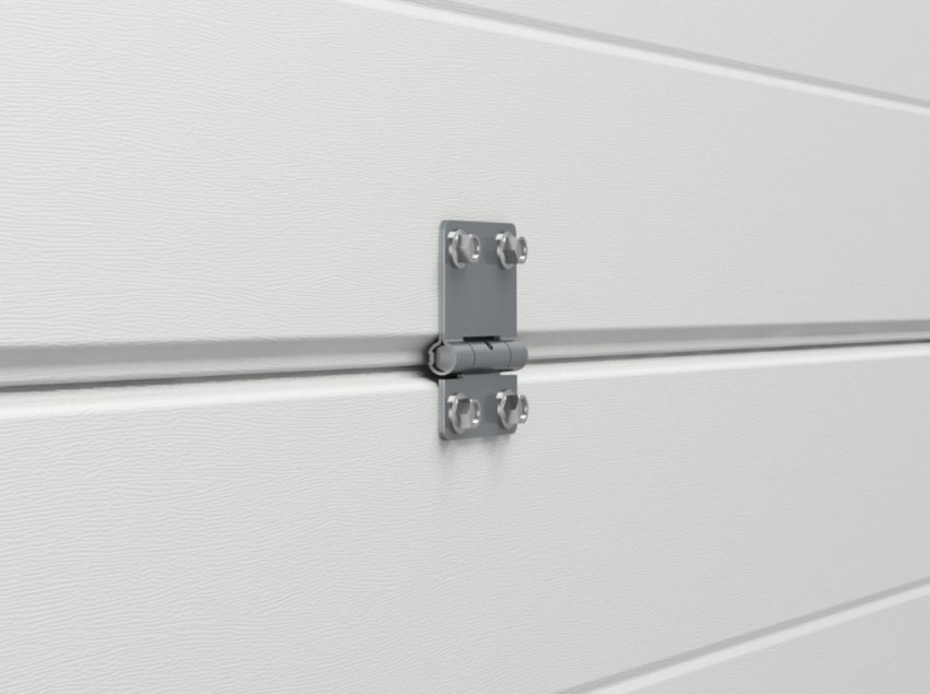 Не менее важен тип конструкции петель, соединяющих сэндвич-панели в цельное полотно. Петли типа «гнутый лист» держат геометрию лучше всего. Каждая такая петля выдерживает нагрузку до 715 кг. Из всех представленных на нашем рынке брендов только «АЛЮТЕХ» использует данное решение в своих воротах серии Prestige.