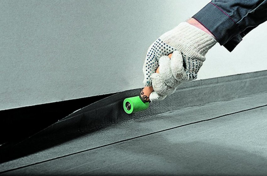 Для гидроизоляции вертикальных поверхностей нарезаются ленты с таким расчетом, чтобы их высота по вертикали составляла не менее 200 мм, на горизонтальной поверхности – не менее 80-100 мм. Эластичность материала позволяет делать заготовки для гидроизоляции конструкций геометрии любой сложности.