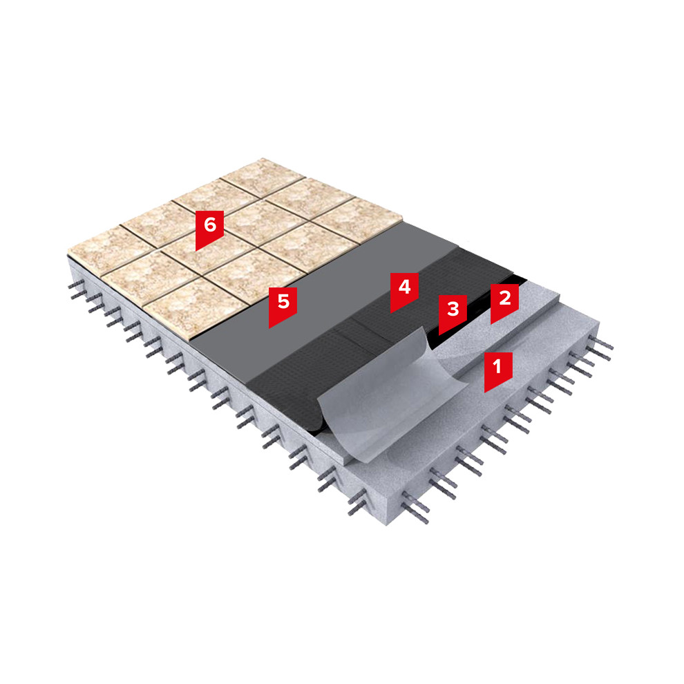 Согласно полученным протоколам испытаний в Научно-Исследовательском Центре, ТЕХНОЭЛАСТ БАРЬЕР ЛАЙТ имеет высокие показатели адгезии с напольным покрытием из керамической плитки в различных условиях эксплуатации. В частности, показатель прочности клеевого соединения в условиях воздушно-сухой среды составляет 0,14 МПа. В водной среде - 0,18 МПа. И при высоких температурах - 0,14 МПа.