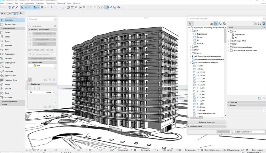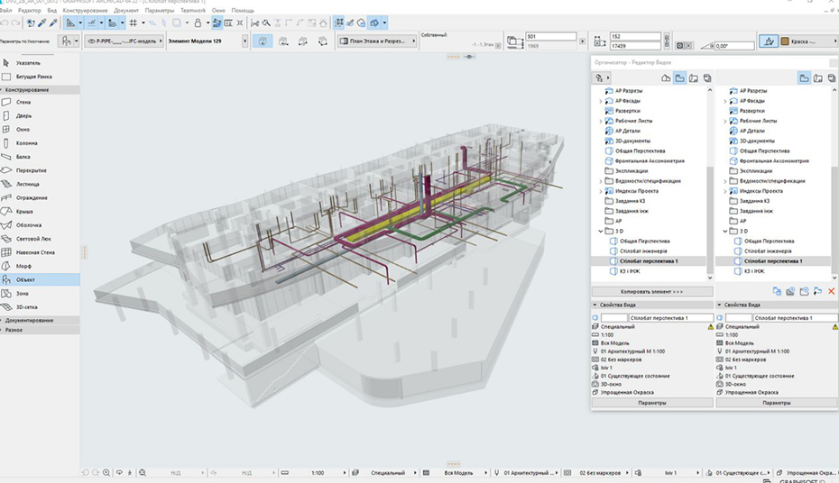«Когда проект запустили в работу, появилась задача быстро реализовать нулевой цикл. Поэтому проект в BIMcloud – Teamwork, и на первых этапах над ним одновременно работали четыре архитектора. Они оперативно выполнили работу и подготовили задания для инженеров. Благодаря функциям коллективной работы мы уложились в сжатые сроки выдачи нулевого цикла», — подчеркивает Правдыч.