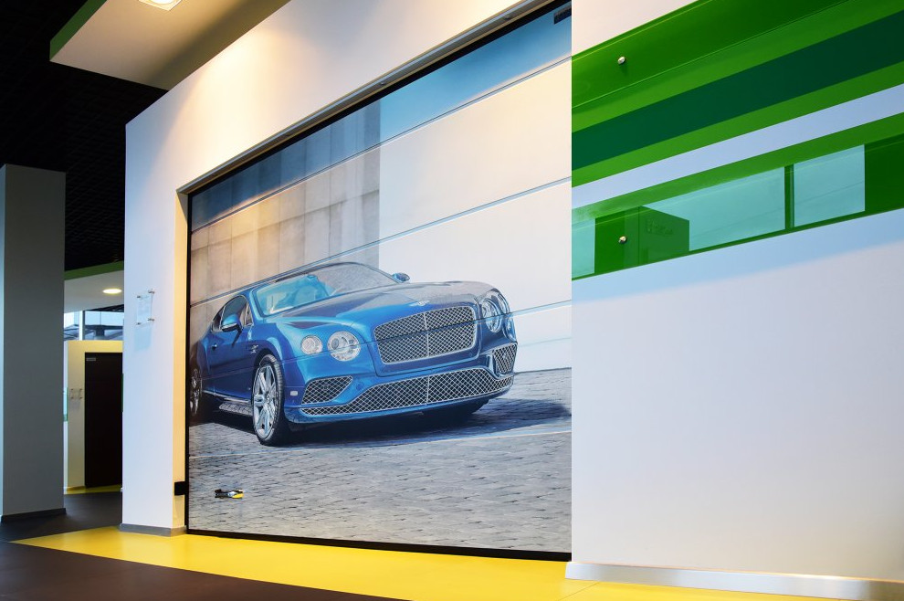 Однако самым оригинальным решением станет нанесение авторского принта на полотно с помощью цифровой печати. Ворота можно украсить любым изображением: фотографией любимого автомобиля, абстракцией или репродукцией картины. Кроме того, можно заказать защитные конструкции с рисунком под камень или под дерево.