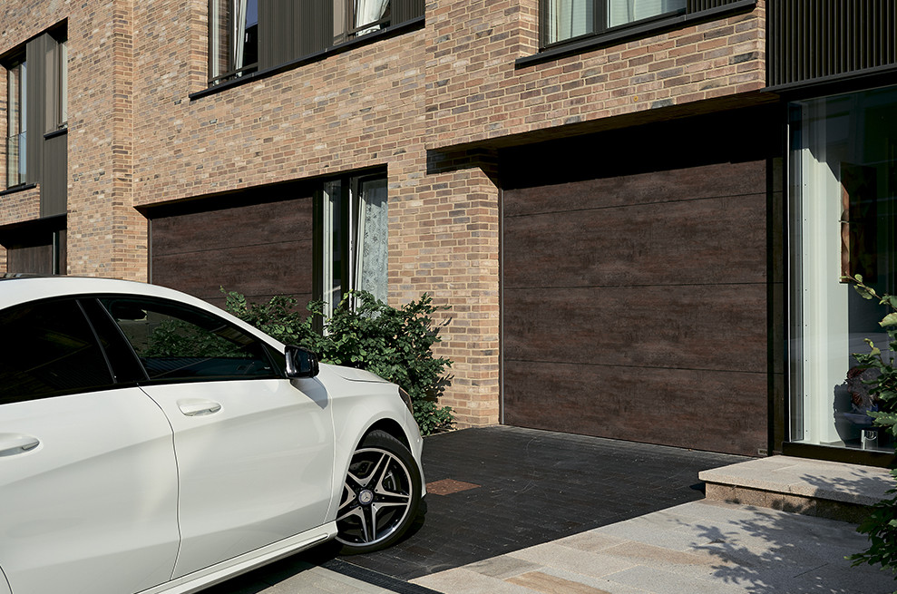 Новая поверхность гаражных ворот Duragrain от компании Hörmann позволяет еще больше разнообразить дизайн: 24 различных декора могут быть реалистично напечатаны на секционных гаражных воротах Hörmann.