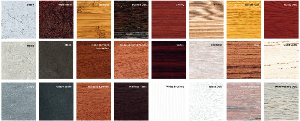 Секционные гаражные ворота Hörmann с L-гофром доступны в 24 вариантах декоративной отделки Duragrain. Например, «ржавая сталь», «бетон» и различные породы дерева, такие как «белый дуб», «бамбук» или «тик». Эти мотивы детально и красочно отображаются на гаражных воротах Hörmann, выглядят естественно. Поверхность покрывается высокопрочным защитным лаком для неизменно прекрасного внешнего вида ворот на период длительной эксплуатации. Поверхность Duragrain также устойчива к ультрафиолетовому излучению и к царапинам, так что частые солнечные лучи не приведут к выцветанию, а маленькие царапины не повредят дизайн.