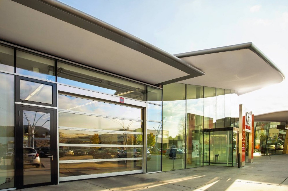 Панорамные ворота «АЛЮТЕХ» – пожалуй, лучшее решение для зданий в стиле хай-тек, автосалонов, промышленных объектов. Главное преимущество этих стильных конструкций в том, что они хорошо герметизируют проем, обеспечивая в здании комфортный микроклимат, и при этом позволяют 24 часа в сутки демонстрировать продукцию потенциальным покупателям.