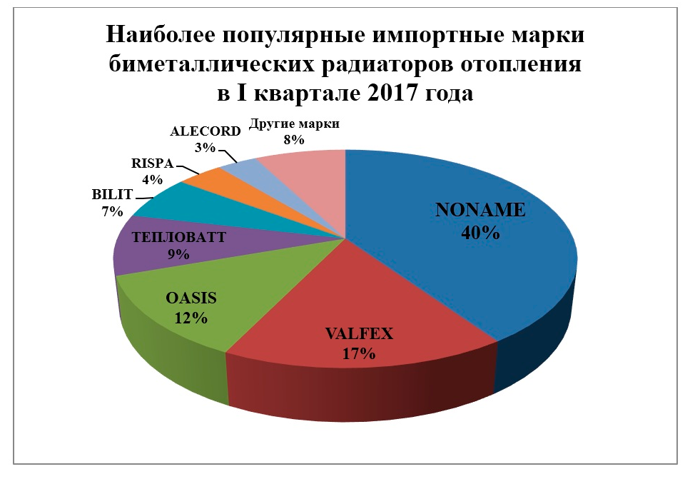 И динамика сохраняется: если сравнивать первую половину 2017 года с аналогичным периодом 2016-го, можно сказать, что импорт «черного биметалла» принимает «взрывной» характер. Так, если в I квартале 2016-го к нам завезли 791 т биметаллических радиаторов, то в первом квартале 2017- го — уже 2 116,5 т. Рост в 2,8 раза.