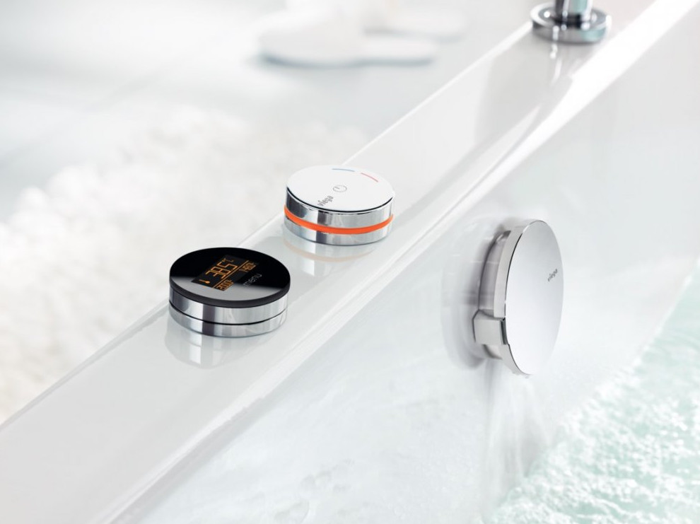 Такая электронно-управляемая арматура, как Multiplex Trio E-Series, разработанная немецким производителем Viega, даёт возможность точно регулировать температуру, количество воды и высоту наполнения в соответствии с индивидуальными пожеланиями. Причём всеми функциями можно управлять дистанционно, через интернет (на смартфоне, планшете, ПК или ноутбуке).